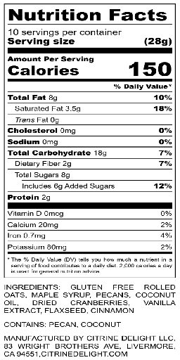 This granola is absolutely delicious! The rich, nutty flavor of the pecans pairs perfectly with the sweet-tart cranberries, creating the ideal balance of flavors and textures. It’s just the right amount of crunchy and not overly sweet, making it a perfect snack or topping for yogurt. I can’t get enough of it—highly recommend!