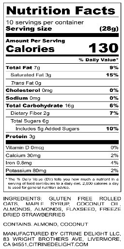 I recently tried the Strawberry Almond Bliss Granola from Citrine Delight, and I’m thrilled to have finally found a granola that strikes the perfect balance of flavor without being too sweet. The ingredient list is simple and transparent—every component is easy to read and recognize, which makes me feel confident feeding it to my family. I also love that this is a handcrafted product rather than something churned out in bulk; you can really taste the care and attention that went into it. The whole almonds add a delightful crunch, and the fresh strawberry essence elevates each bite. It’s wonderful knowing I’m giving my kids a nourishing treat made with real ingredients and plenty of heart.